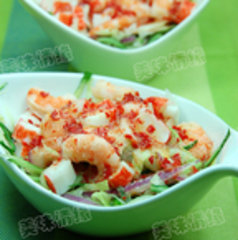 杂菜虾沙律,酸辣汁,这种汁集酸香甜辣于一身,用它来做沙律特别好吃,而且又非常健康。