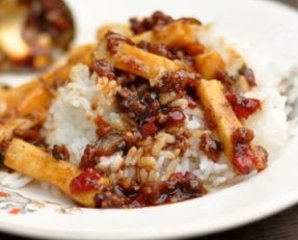 什么是盖浇饭?顾名思义,就是把菜汁浇在米饭上面做的饭。这道肉酱山药盖浇饭,做法简单,可是营养却不简单哦!赶紧来尝尝吧!肉酱山药盖浇饭怎么做?请看下面肉酱山药盖浇饭的做法教程讲解。