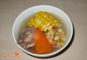 玉米胡萝卜猪骨汤的简单做法中大家要一次性加足水,这样煮出来的汤味道最好。而且煮这个汤无需加入其它调料,原汁原味最好喝,有股玉米的甘甜味道。