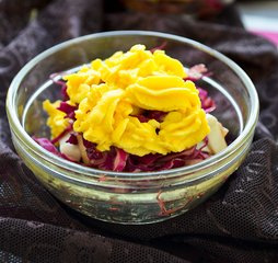 紫甘蓝鸡蛋沙拉是一道看起来漂亮,吃起来鲜中带香的美食,紫甘蓝的紫色衬托着鸡蛋的黄色,高贵典雅又不失清新自然,吃起来有着鸡蛋的鲜嫩和紫甘蓝的清新,甚是美味。