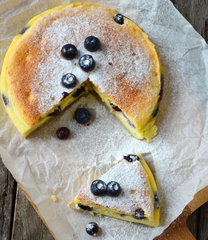 蓝莓香草魔法蛋糕他的神奇在于只需经过一次烘焙,就能获得三种不同的口感,最下层爽滑的布丁层,中间层浓郁软嫩如蛋挞馅的卡仕达层,最上层轻柔绵密的海绵蛋糕层。人们都惊奇于它独特神奇的口感,做好的蛋糕在微温时脱模也会很好吃,但形状没有模具的支撑会变得比较扁,最好是完全放凉再脱模。想热食只需微波1分钟!