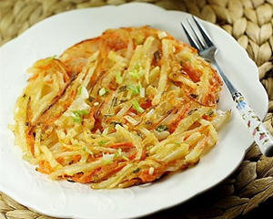 这款胡萝卜土豆丝煎饼所用材料简单、制作也很简单,无须三分钟就可以出锅,即是很适合小朋友和老人家的健康零食,也可以作为全家人的早餐。煎好的胡萝卜土豆饼色泽艳丽,酥酥的、脆脆的,丝丝分明,吃到口里太美味了。这何况很多孩子们对胡萝卜不理睬,这样的做法让小朋友不知不觉就美美地吃下去了 ,非常有成就感吧。土豆又多了一种新吃法,你一定要尝试一下哟。