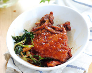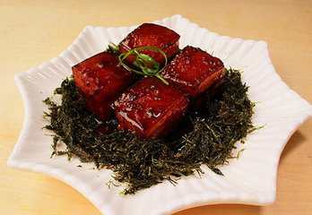 苔菜小方烤介绍 苔菜小方烤是浙江的传统菜肴,这道菜的卤汁稠浓,肉块特别的酥糯,苔菜也很清香。两者搭配起来,使整个菜不仅从色彩上很美观,而且味道很美味,下面我们就跟着健康美食学学怎么做吧!