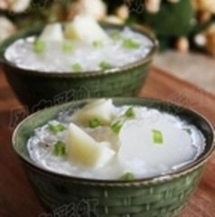 秋天的芋头特别适合身体虚弱者食用。这道粥肉香米烂,基本成糊状;口味鲜美,营养丰富。是老人小孩早晚餐的不二选择。