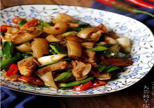 大蒜炒羊皮的介绍:人们经常食用羊肉,羊皮貌似到了被忽略的地步了,羊皮和猪皮一样,一般多是用来炖汤,今天的这道大蒜炒羊皮做法简单,吃起来劲道,羊皮不易熟且不易入味,要事先炖煮至软烂;且炒之前用少量盐提前入味,大蒜炒羊皮的做法请看下面地铺行网的做法。