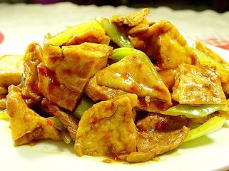 此菜是在豆腐经烹烧后,再把经煽炒的肉茸浇在豆腐上,鲜嫩味美,很不错的一道下饭菜。