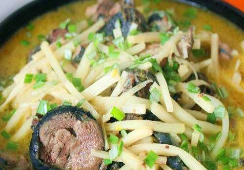 笋丝乌鸡的介绍:乌鸡是鸡类中进补最合适的,一般都是家养的,炖出来的汤汁浓厚鲜美,鸡肉吃起来肥嫩而不柴,口感很好,在加上笋丝的配合,不仅营养极致,吃起来浓厚的鸡汤中带着一丝清新,很爽口,笋丝乌鸡的做法请看下面地铺行网的讲解。