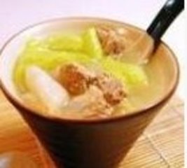 筒骨青菜汤介绍:筒骨青菜汤主要取材于筒骨和青菜这两种食材,骨头汤是这个冬季里很常见的一种美味美食,老少皆宜,老年人食用骨头汤可以预防骨质疏松,小孩子食用骨头汤可以帮助骨骼的生长发育,骨头汤鲜美,但是喝多了会有些腻,所以这里加了一些青菜来煮,在为其解腻的同时,青菜所含有的纤维素还能帮助骨头的解腻,很是不错的。