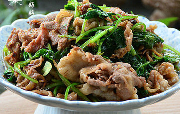 猪肉炒蒿子杆介绍 茼蒿是我们经常食用的一种美味食材,它吃起来清新脆嫩美味,我们平常所吃茼蒿大概都是吃叶子,梗子大部分都会被扔掉,其实大家不知道,蒿子秆做好的也是很好吃的呢.