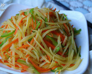 酸辣土豆丝的介绍:土豆是我们大家都非常熟悉的食材了,土豆是个很神奇很百搭的东西,可以做出任何的美食,在很多菜肴中,它都可以当成配菜与之制作出完美的味道来,土豆是一种含淀粉比较多的食物,在传统人们的眼光里认为,这类食物吃多了会导致体重上涨,但其实如果制作方法得当,它是可以起到减肥的作用的,今天给大家介绍一道酸辣土豆丝,味道超级好,酸酸辣辣的非常开胃。