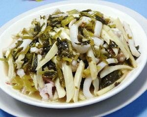 这道雪菜茭白炒鱿鱼的做法特别简单的家常下饭菜,而且营养价值还非常丰富。鱿鱼有少量的脂肪和碳水化合物,鱿鱼中的微量元素以及钙、磷、硒、钾、钠含量都是较高的。有人特别是女孩子,以为吃鱿鱼会发胖。其实,鱿鱼、墨鱼等不但胆固醇含量低,营养价值还能和深海鱼媲美。