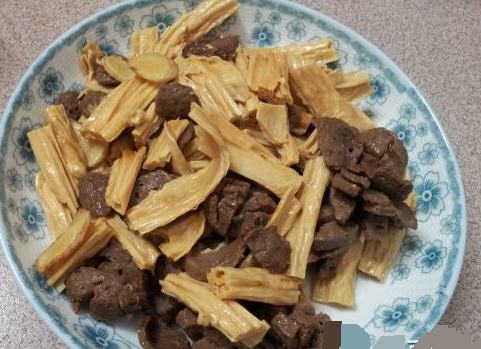 牛筋丸炒腐竹介绍 牛筋丸炒腐竹是一道做法非常简单的家常菜,在做法上只需要将腐竹、牛筋丸处理好之后一起煮制即可,在做的时候要注意第一个是食材的预先处理问题,腐竹需要提前泡发好,另外所有食材都翻炒的差不多的时候,煮的时候要用小火煮.