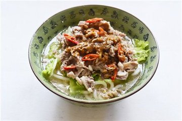 烧虾捞檬的做法图文讲解:越北的河内汤河粉最为正宗,灼熟的檬粉与众多新鲜配料一起凉拌,新鲜爽口,加上两只烤虾,越南风味独具