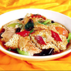 这道菜非常的好吃,尤其是锅巴,趁热吃当然是一定的。还有一个更好看的:炒肉浇在锅巴上会发出噼哩啪啦的油爆声音,极具观赏性。餐馆一般是当客人的面浇。
