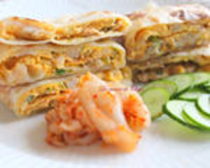 泡菜猪肉蛋饼,爽脆的泡菜搭配薄薄的肉片,爽口提神,给炎热的清晨增添了一丝凉意。而且制作简单,因为是自己i做的对外面吃起来跟卫生放心!大家快来试试这道美味的早晨煎饼吧!