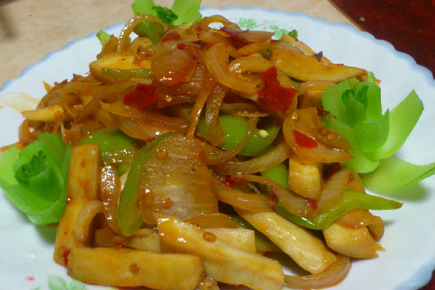 素炒鸡腿菇介绍:洋葱是一种非常适合老年人食用的美味蔬菜,它含有丰富的维生素和纤维素,有着降血压、降血脂的作用,还可以增强身体的抵抗力,鸡腿菇含有丰富的氨基酸和微量元素,老年人食用可以预防老年痴呆。两者搭配在一起做成的这道素炒鸡腿菇吃起来鲜美中带着清新,并且营养价值高,另外还加了尖椒,吃起来更是香辣下饭。