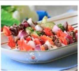 “串烧”是将肉类、海鲜、蔬菜瓜果等食物串成一串进行烧烤,成为一种食物类型的名称。色香味俱全。