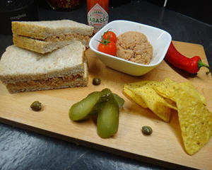 鲔鱼墨西哥玉米片做法简单易上手,把所有酱料跟鲔鱼混合,然后配上玉米片就好了,晚上看电视必备小零食哟。