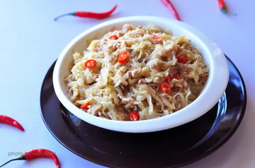 酸菜粉丝炒肉介绍:如果仅仅是用粉丝炒肉,味道未免太过于单一了,有了酸菜的加入,使整道菜的味道得到了升华,变成了一道非常开胃的菜肴,配上米饭再美味不过了,肉质也变得爽滑鲜嫩,粉丝也弹性十足,一起来学习制作下吧! 酸菜粉丝炒肉的做法请看下面地铺行网的讲解。