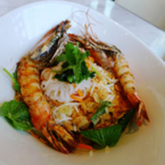 烧虾捞檬的做法图文讲解:越北的河内汤河粉最为正宗,灼熟的檬粉与众多新鲜配料一起凉拌,新鲜爽口,加上两只烤虾,越南风味独具