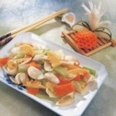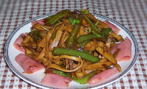 彩烩皇帝豆,好吃健康,热炒的皇帝豆松脆度在炖汤凉拌之间,热炒的豆烩肉片因为素蚝油多了酱香的气味而味美肉香。然而皇帝豆具有健脾壮肾、增强食欲、抗风湿、补血补钙,和治疗冠心病的功效,虽然有利肠整胃作用,但食后易饱胀闷痛的人不宜多吃哦!