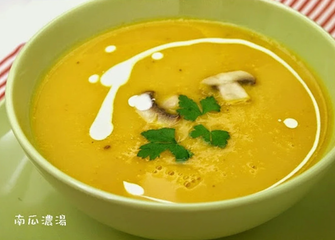 南瓜浓汤,西式的浓汤,多数都是白酱的作法,也就是奶油去炒面糊,再慢慢加牛奶做出浓厚的汤底。但炒白酱,说实在的有点辛苦,所以我觉得做南瓜浓汤真是省事多了,虽然制作简单但是一样美味健康哦。而且南瓜浓汤具有排毒塑身,促进消化,降血糖,促进生长发育,的功效哦!