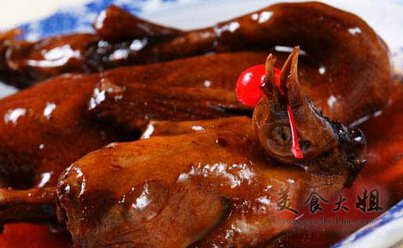带子上朝的做法 第一步、鸭子去毛去内脏冲洗干净,鸽子去牛去内脏冲洗干净,然后沥干水份。 第二步、用酱油和黄酒涂鸭子和鸽子,然后静置半小时入味一下。 第三步、锅上炉加热,倒入食用油烧至八成热,下鸭子和鸽子炸成枣红色,捞出控油...