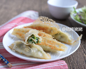 香酥可口的韭菜猪肉锅贴制作时馅料不能太湿,不然两头露馅受热后易出汤,最好把肉馅里加上鸡蛋清可使肉的口感更加嫩滑,注意煎锅贴要全程用小火慢煎。