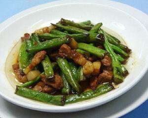 这个猪肉炒梅豆的做法特别简单,而且营养也非常丰富。这道菜里的梅豆具有肾虚腰痛的男士以及风湿腰痛人士,梅豆含有尿毒酶,血细胞凝集素,刀豆氨酸等,还有治疗肝性昏迷和抗癌的作用。梅豆可以增强大脑皮质的抑制过程,使神志清晰,精力充沛。