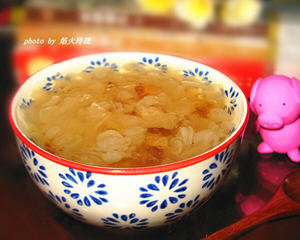 桃胶皂角米炖雪耳是秋季润燥养颜糖水,桃胶、皂角米、银耳,都富含然植物胶原蛋白,是美容养颜圣品。冰糖又有润肺的功效,一起炖煮后口感软糯丝滑,具有祛燥滋阴养颜的作用,最适合现在天气食用。特别说明:孕妇和月经期不宜食用这款糖水。