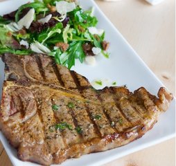 小编今天给大家推荐的这道烧烤T骨牛排用到的这T骨牛排在牛腰部,肋骨胸腔之后的脊椎两侧的肉,连带一部分脊椎,和靠近腹腔的一长条细锥形的嫩肉。味道非常之嫩,是牛排中的极品。