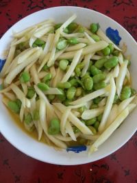 茭白炒黄豆介绍 茭白和黄豆都是很难入味的两种食材,所以做出来的菜肴可能吃起来有些清淡,适合大部分老年人食用,茭白吃起来比较的脆爽,使人在口感上就开始喜欢这道菜,黄豆的营养也是很高的,下面一起来学习下吧! 茭白炒黄豆的做法教程: 1.黄豆洗净,把
