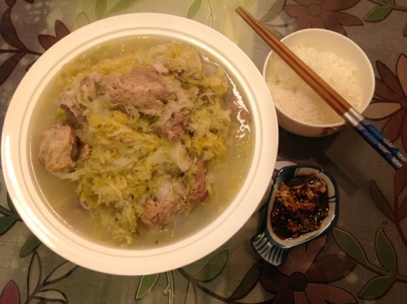 大骨头炖酸菜介绍:益气补血、增强抵抗力、补肾,大骨头炖酸菜里面的酸菜、白肉、大骨头一点儿也不油腻,清新爽口,营养丰富,酸菜里面的乳酸菌可以刺激消化腺的分泌,帮助消化,增进食欲。下面一起体验一下地铺行网地道的东北大骨头炖酸菜,为寒冷的冬季增添一点儿温暖吧。