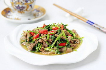 这道薯藤炒肉丝是一道家常菜肴,营养丰富,做法也非常简单。在做这道菜时,一定要先把薯藤的外皮剥掉,在切成小断的,和肉搭配着炒最完美。薯藤炒肉丝吃着口感清甜,入口脆脆的,用来炒肉丝,家常又下饭。