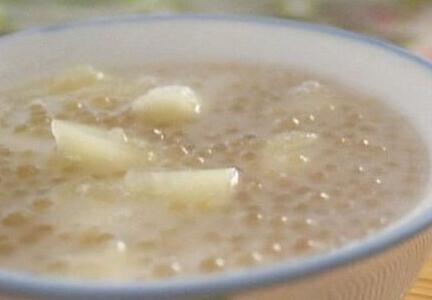 2、糯米珍珠放入热水中泡40-50分钟至透明,中间要不断加水。
