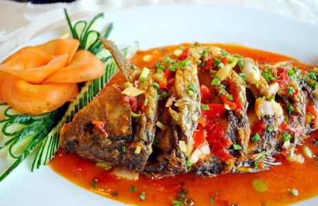 这家就是最著名的番茄鱼店了,口味没得说,香味来自于最上层炸过的姜,很特别。68好大一盆,应该有一整条鱼吧,还有N多番茄,番茄都是去皮对半切开的,和鱼简直是绝配。不过环境就相当一般了