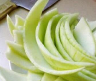 做法:吃完西瓜后,将红瓢去掉,取白色瓜皮的部分,尽量切薄一点,一般为1mm左右。然后将脸部洗干净,开始使用。