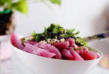 同时苋菜里含有大量的花青素,苋菜汁的紫红色,正是花青素的颜色。(纯花青素是蓝紫色的,苋菜汁的紫红色其实是大量的花青素和少量的其他色素综合作用的结果)