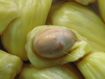 小贴士:菠萝蜜的核不要丢掉哦,果实有补中益气的功效,我们可以用盐水煮着吃,味道也是非常不错的。当地人经常用粗盐爆炒或者盐水煮来吃,口感香脆,胜似板栗的味道呢。
