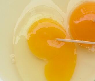 1、首先准备一个鸡蛋,取蛋黄留蛋清。取化妆棉或面膜纸浸泡在蛋清中。