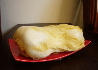 第二步然后将白菜以及盐混合均匀,进行腌制。记得加水。