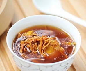 四、看汤色。拿几根虫草花用开水泡一下,好的虫草花汤色清亮透明,吴金黄色或橙黄色,几乎看不到任何悬浮微粒,喝起来甘甜清香。差的虫草花汤色发青,里面有浑浊的感觉,闻起来有酸、腥味。