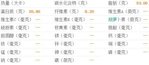 开心果(熟)的热量和营养价值,热量:614 大卡(100克)分类:坚果、大豆及制品。评价:熟开心果水分含量低,纤维、脂肪、碳水化合物、蛋白质含量高,热量高,减肥时仅可少量食用。