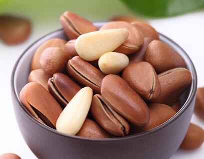 松子是松树的种子,又称海松子。松子含脂肪、蛋白质、碳水化合物等。松子既是重要的中药,久食健身心,滋润皮肤,延年益寿,也有很高的食疗价值。松子中富含不饱和脂肪酸,如亚油酸、亚麻油酸等,能降低血脂,预防心血管疾病;松子中所含大量矿物质如钙、铁、磷、钾等,能给机体组织提供丰富的营养成分,强壮筋骨,消除疲劳,对老年人保健有极大的益处。