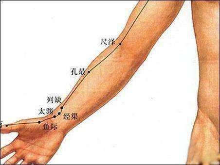 取此穴位时应让患者采用正坐、仰掌并微曲肘的取穴姿势,尺泽穴位于人体的手臂肘部,取穴时先将手臂上举,在手臂内侧中央处有粗腱,腱的外侧外即是此穴(或在肘横纹中,肱二头肌桡侧凹陷处)。该穴上方3-4厘米处用手强压会感到疼痛处,就是“上尺泽”。(详见此手臂穴位图相关图示) 主治疾病:此的主治疾病为:喉咙疼痛、感冒、肘部疼痛、手臂疼痛、心悸等。该穴为人体手太阴肺经上的重要穴道之一,本站有关该穴的治病穴道指压法有:治疗喉咙痛、鼻塞。充内容:(国家针灸穴位取穴标准)人体尺泽穴位于肘横纹中,肱二头肌腱桡侧凹陷处。位置:手肘朝上稍微弯 曲,中央凹陷处,可以摸到一根大筋,大筋外侧即为尺泽穴。