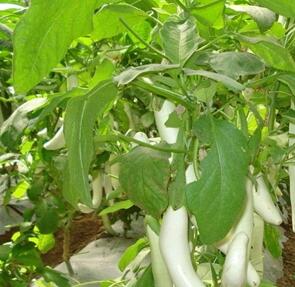 白茄子有的呈椭圆形,像一个大大的鸡蛋,中间的肉非常厚实,切开后里面也是白色的。而紫茄子则成条状,长的瘦长瘦长的,中间的肉也为白色,但表皮的部位为淡绿色。