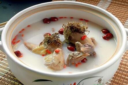 2.乳鸽的骨内含有丰富的软骨素,可与鹿茸中的软骨素相媳媲美,经常食用,具有改善皮肤细胞活力,增强度肤弹性,改善血液循环,面色红润等功效.乳鸽含有较多的支链氨基酸和精氨酸可促进体内蛋白质的合成,加快创伤愈合.