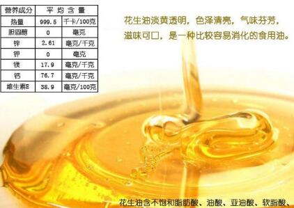 花生油的脂肪酸构成是比较好的,易于人体消化吸收。据国外资料介绍,使用花生油,可使人体内胆固醇分解为胆汁酸并排出体外,从而降低血浆中胆固醇的含量。另外上,花生油中还含有甾醇、麦胚酚、磷脂、维生素E、胆碱等对人体有益的物质。经常食用花生油,可以防止皮肤皱裂老化,保护血管壁,防止血栓形成,有助于预防动脉硬化和冠心病。花生油中的胆碱,还可改善人脑的记忆力,延缓脑功能衰退。