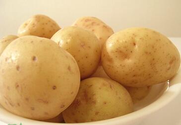尽量选择外皮颜色暗黄的,一般内色呈淡黄色,其淀粉含量高,含有胡萝卜素,口味会比较好.外皮变绿的、局部有黑斑或者淤青的土豆都含有毒素,不要再食用了.