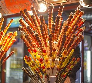 冰糖葫芦特点:富含维生素C、果胶和多种有机磷、采用现代工艺去果核,色泽红艳、无色素、无食品添加剂,口感尚好,属天然营养食品.